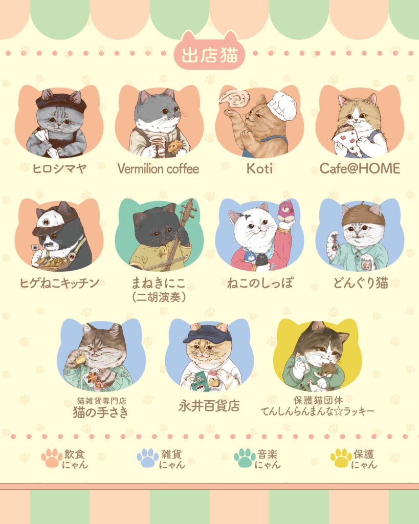 会場に猫はおりません。猫モチーフの雑貨やグルメをお楽しみください。